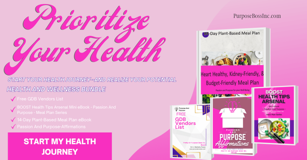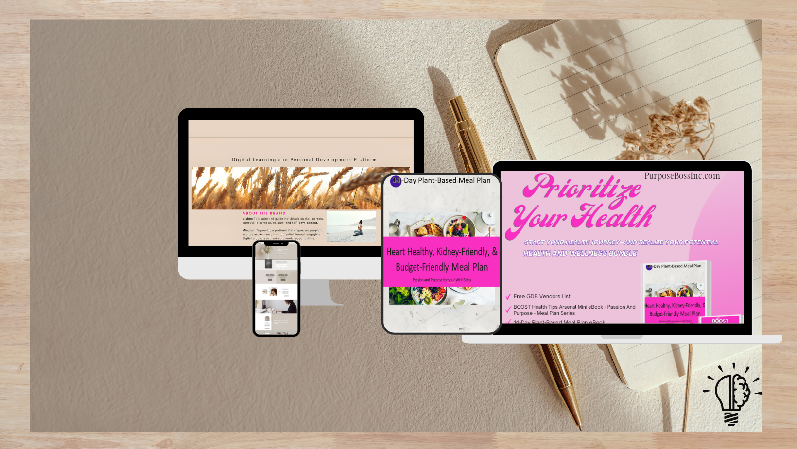This bundle focuses on your budget and caters to a heart-healthy, kidney-friendly lifestyle to those pursuing a comprehensive path to personal growth, emphasizing a healthy diet. This carefully curated package includes a 14-day meal plan, an affirmations e-Guide, and our BOOST Health Tips Arsenal Mini eBook, all aimed at supporting your wellness journey.
